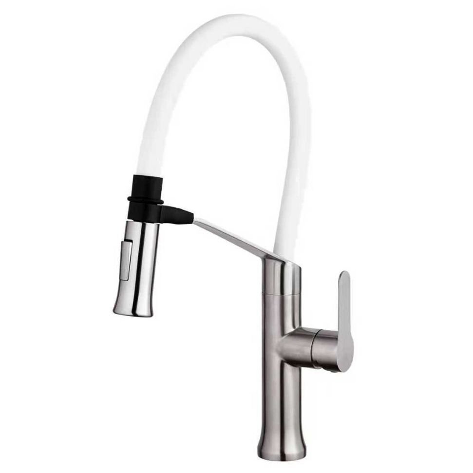 Смеситель для кухни Fashun (Фашун) (A54501-8) с магнитным фиксатором, гибким изливом сатин,белый