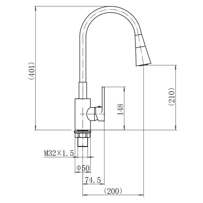 смеситель для кухни с гибким изливом, H=401 мм