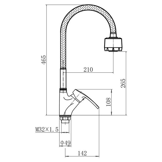 смеситель для кухни с гибким изливом, H=465 мм