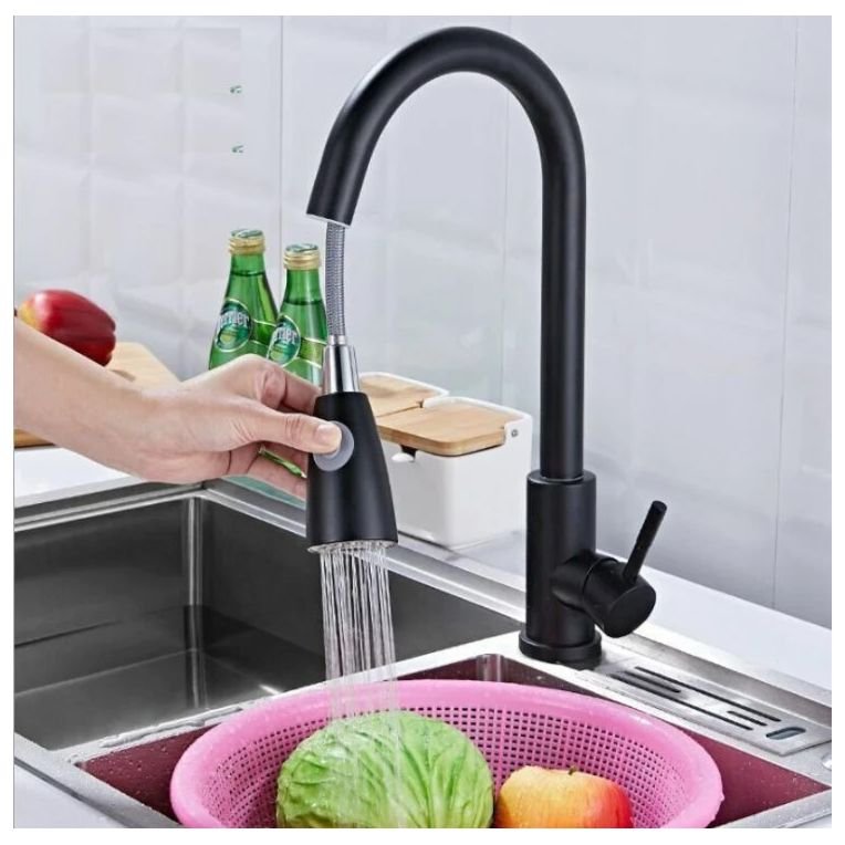 Смеситель для кухни Fashun (Фашун) с вытяжной лейкой (A56109-7) черный