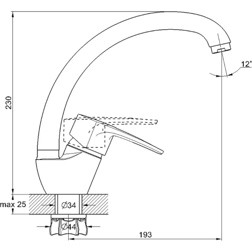 длина излива (мм):193 p>