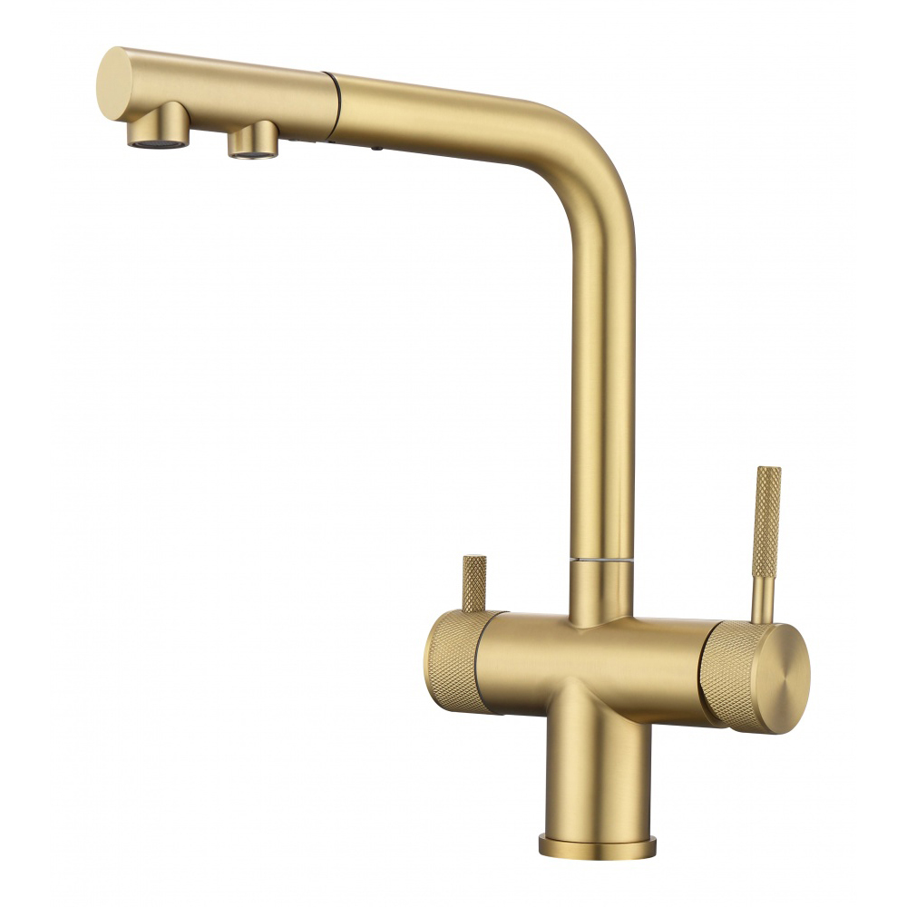Смеситель для кухни Hansen (Хансен) HN15058-S под фильтр, выдвижной, Матовое золото
