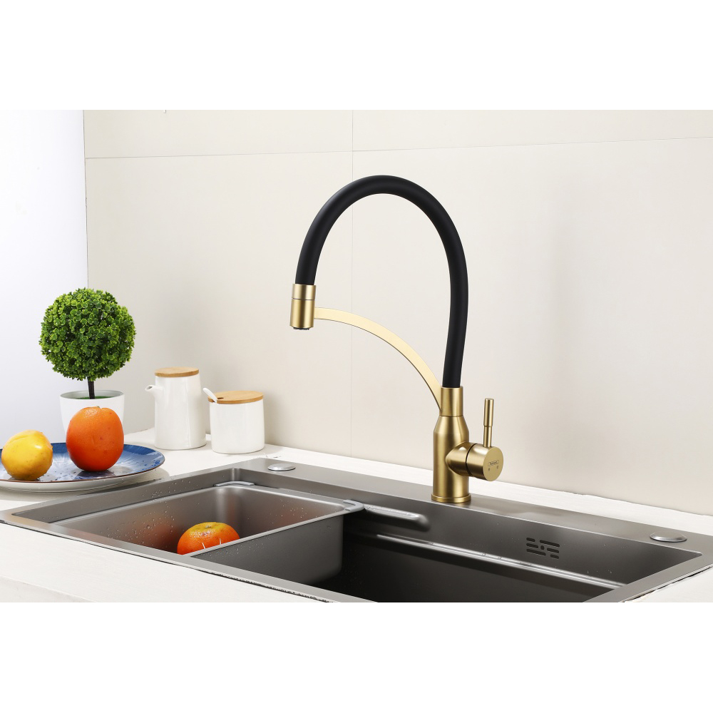 Смеситель для кухни Hansen (Хансен) HN56043-DC гибкий, Матовое золото,черный