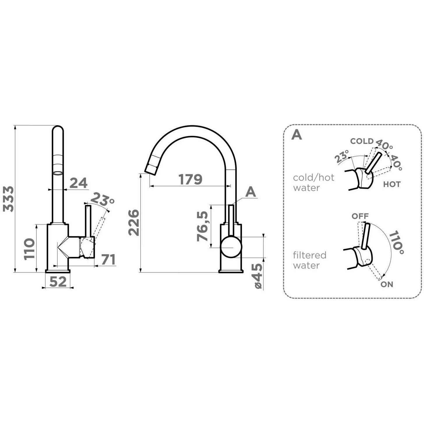 Новая удобная технология системы ручки 2 в 1 Multiпозволяет переключить с водопроводной на фильтрованную воду в одно касание.