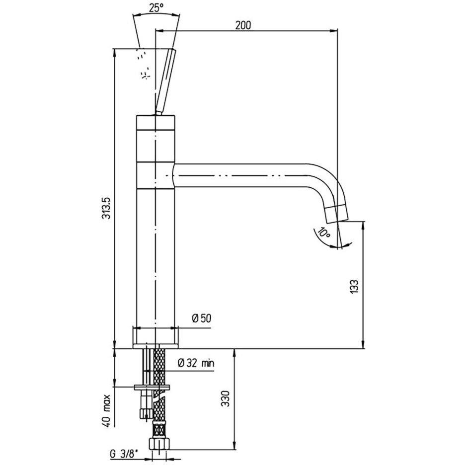 Высота излива (мм):133 p>