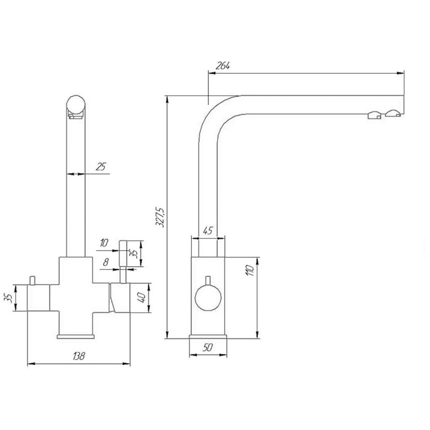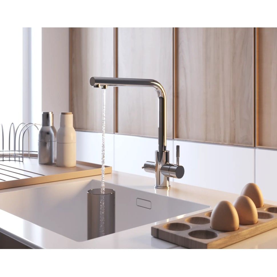 Помимо стандартного рычага для управления температурой воды и открытия / закрытия, имеется рычаг для подачи фильтрованной воды.