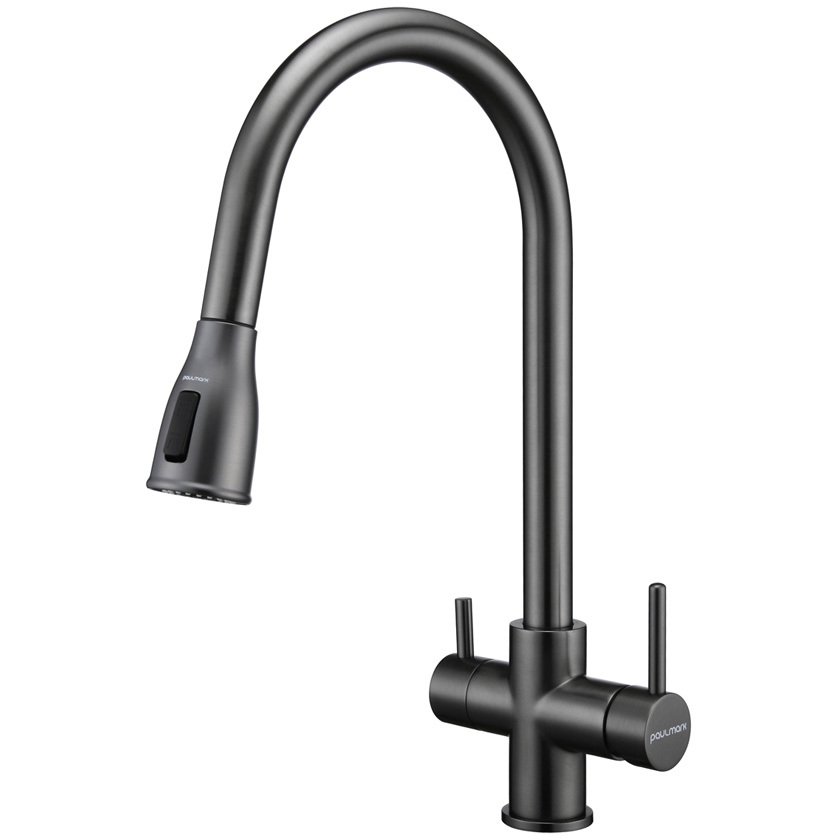 Смеситель для кухни Paulmark (Паульмарк) под фильтр с выдвижным шлангом Lange вороненая сталь La214212-GM