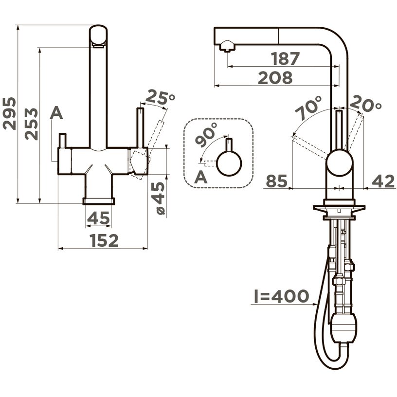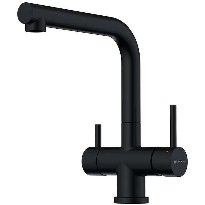 Смеситель OMOIKIRI в категории 3 в 1: функция подачи холодной/горячей воды, возможность подключения фильтров для очистки и наличие вытяжного шланга.