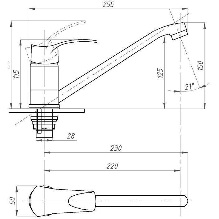 Кухонная модель устанавливается на мойки и раковины. При необходимости может быть использована в ванной комнате. Для крепления к раковине присутствует латунная гайка-шайба и удлиненный шток. Таким образом, российский смеситель на гайке. Сам тип крепления набортный.