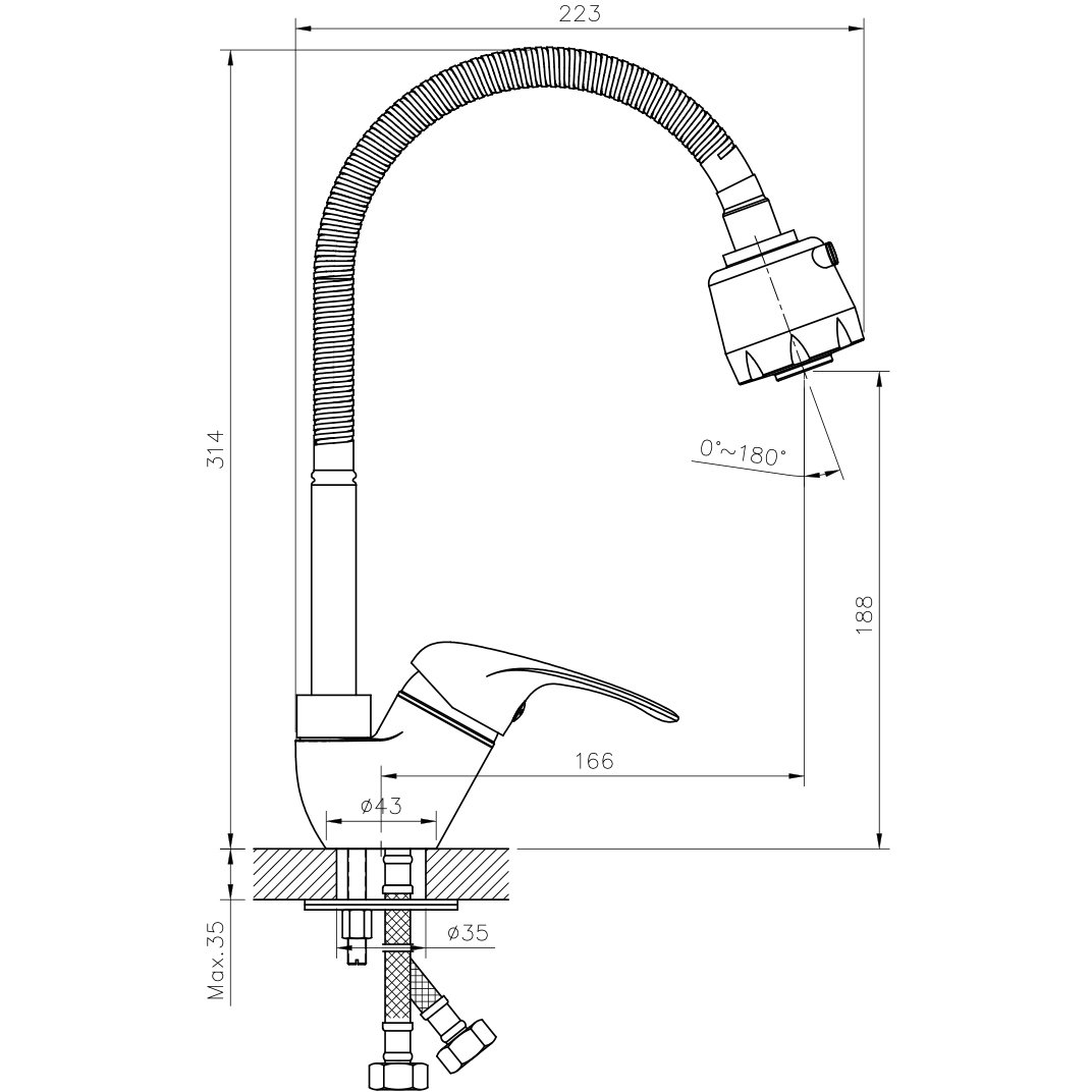 Смеситель для кухни Rossinka (Росинка) A35-26 хром с гибким изливом