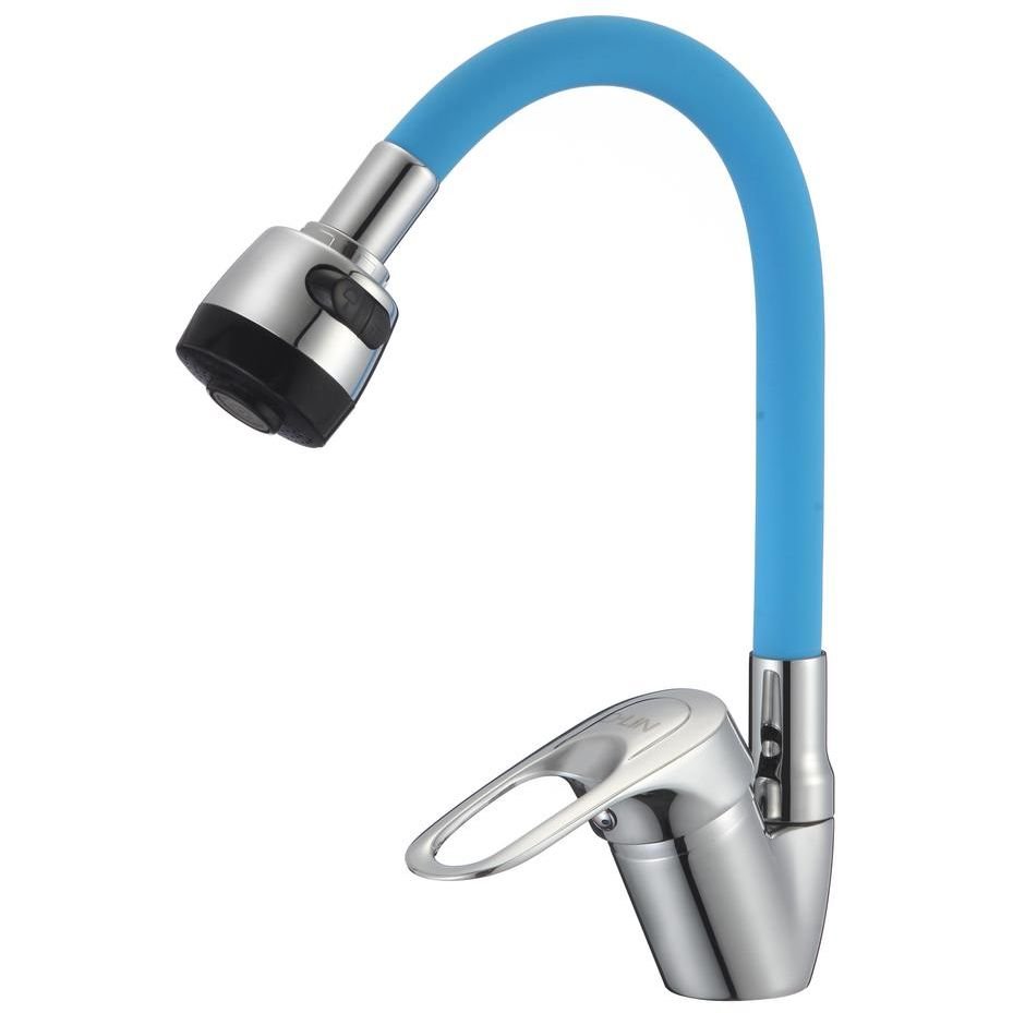 Смеситель для кухни с гибким изливом D-Lin (Д-Лин) D150628-6T, хром/синий