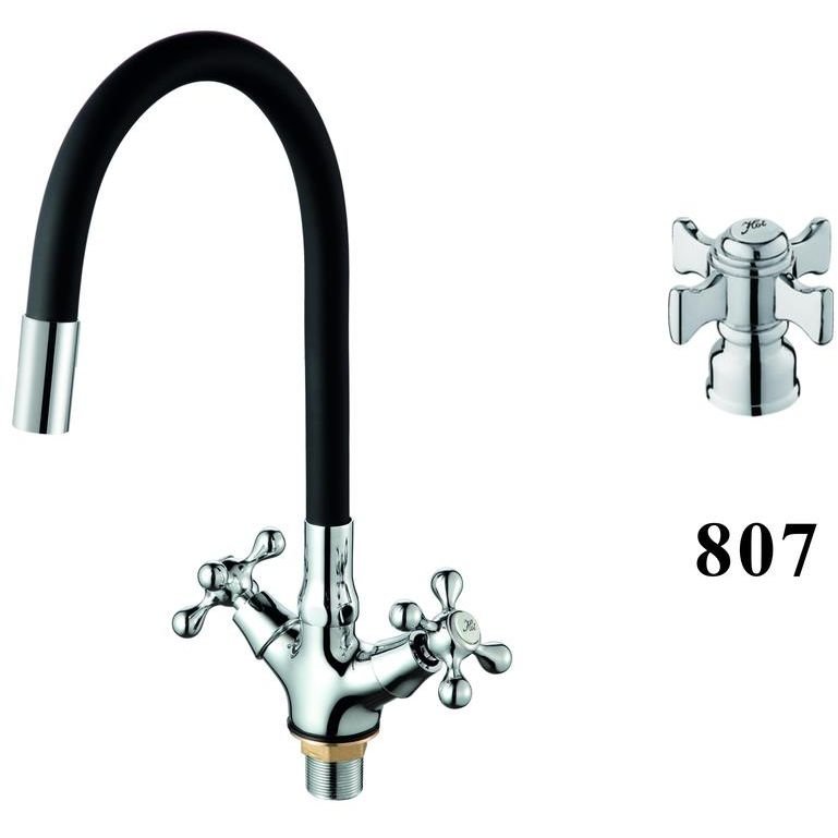 Смеситель для кухни с гибким изливом D-Lin (Д-Лин) D153807-1, хром/черный