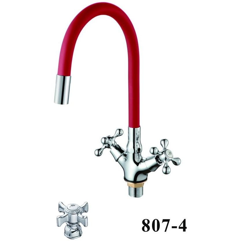 Смеситель для кухни с гибким изливом D-Lin (Д-Лин) D153807-4, хром/красный
