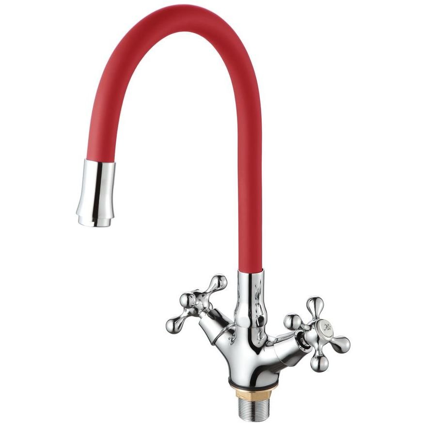 Смеситель для кухни с гибким изливом D-Lin (Д-Лин) D153810-4, хром/красный