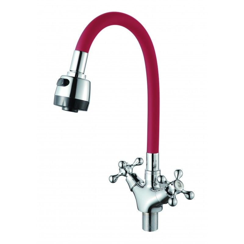 Смеситель для кухни с гибким изливом D-Lin (Д-Лин) D153810-4T, хром/красный