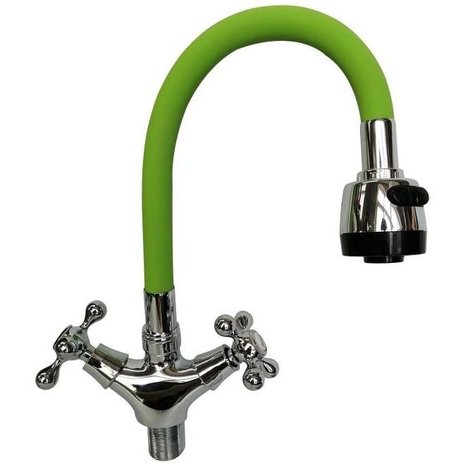 Смеситель для кухни с гибким изливом D-Lin (Д-Лин) D153810-5T, хром/зеленый