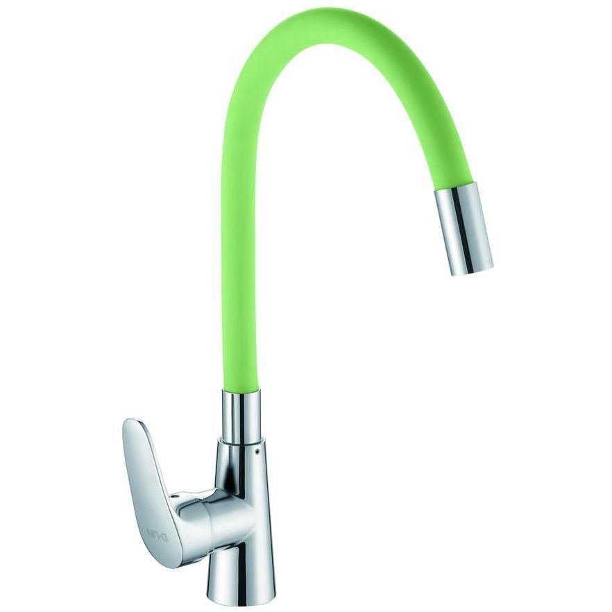 Смеситель для кухни с гибким изливом D-Lin (Д-Лин) D155302-5, хром/зеленый