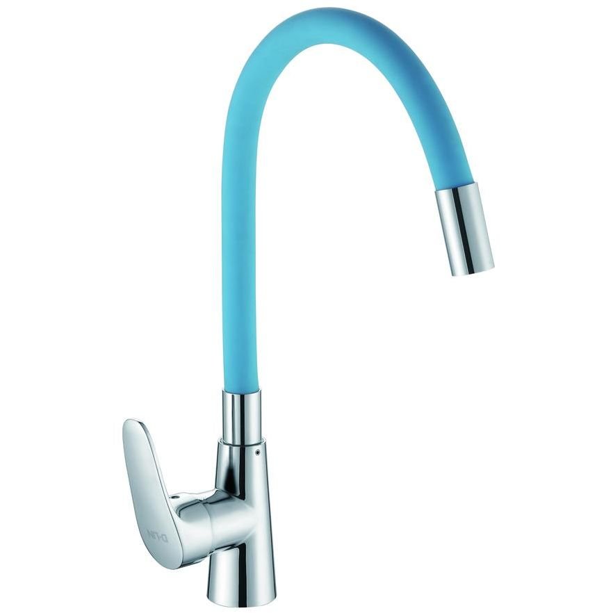 Смеситель для кухни с гибким изливом D-Lin (Д-Лин) D155302-6, хром/синий