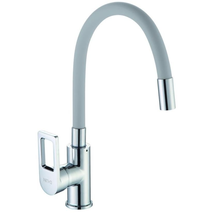 Смеситель для кухни с гибким изливом D-Lin (Д-Лин) D155308-2, хром/серый