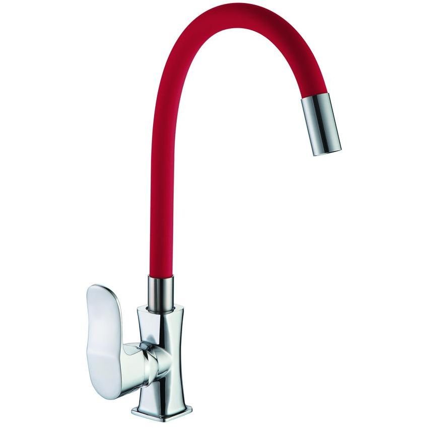 Смеситель для кухни с гибким изливом D-Lin (Д-Лин) D155318-4, хром/красный