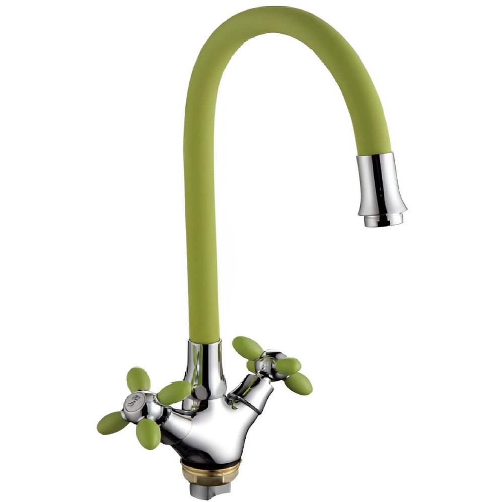Смеситель для кухни с гибким изливом Fashun (Фашун) A44127-6, хром/зеленый