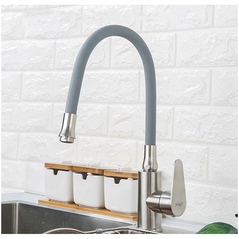 Смеситель для кухни с гибким изливом Frap (Фрап) F4448 сатин,серый