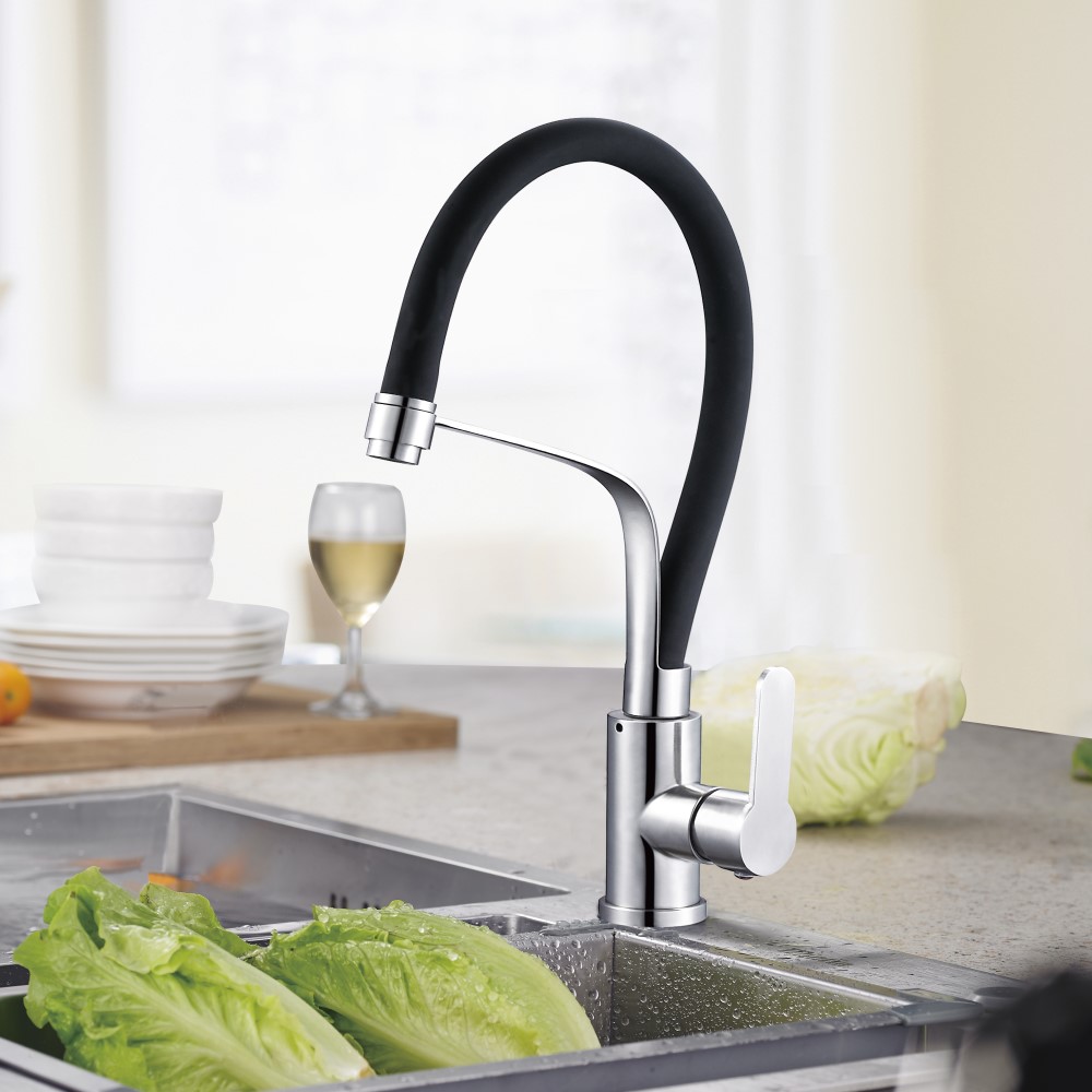 Смеситель для кухни с гибким изливом и подключением фильтра Shevanik (Шеваник) S668H, черный