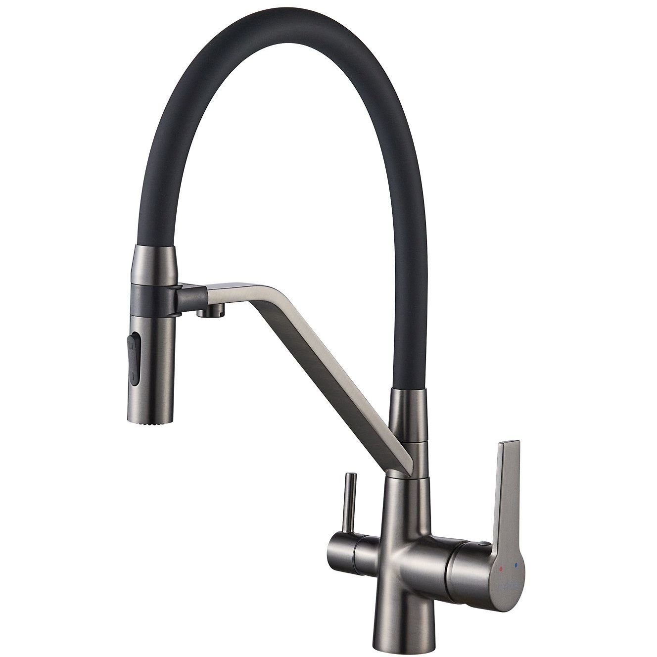Смеситель для кухни с гибким изливом и подключением фильтра Shevanik (Шеваник) , оружейная сталь, S278T
