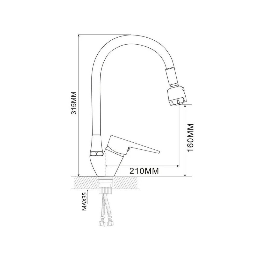 Форма излива:гибкий, поворотный p>