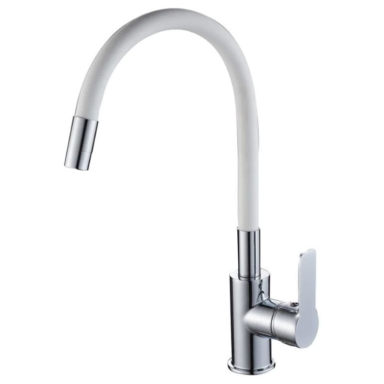 Смеситель для кухни с гибким изливом RUSH арт.SI7335-60White с металлической ручкой из коллекции Siple, изготовлен из высококачественной латуни и имеет рычажное управление.