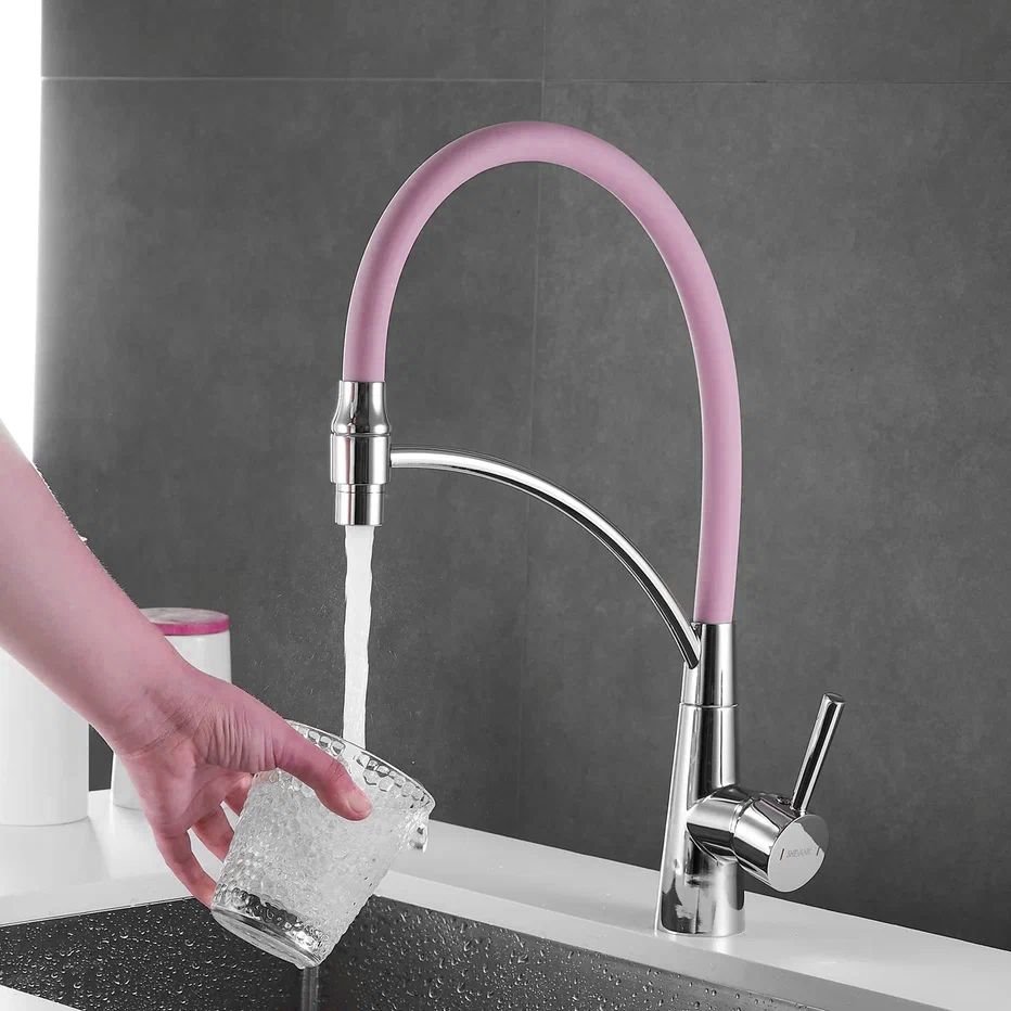 Смеситель для кухни с гибким изливом D-Lin (Д-Лин) D153810-2T, хром/серый