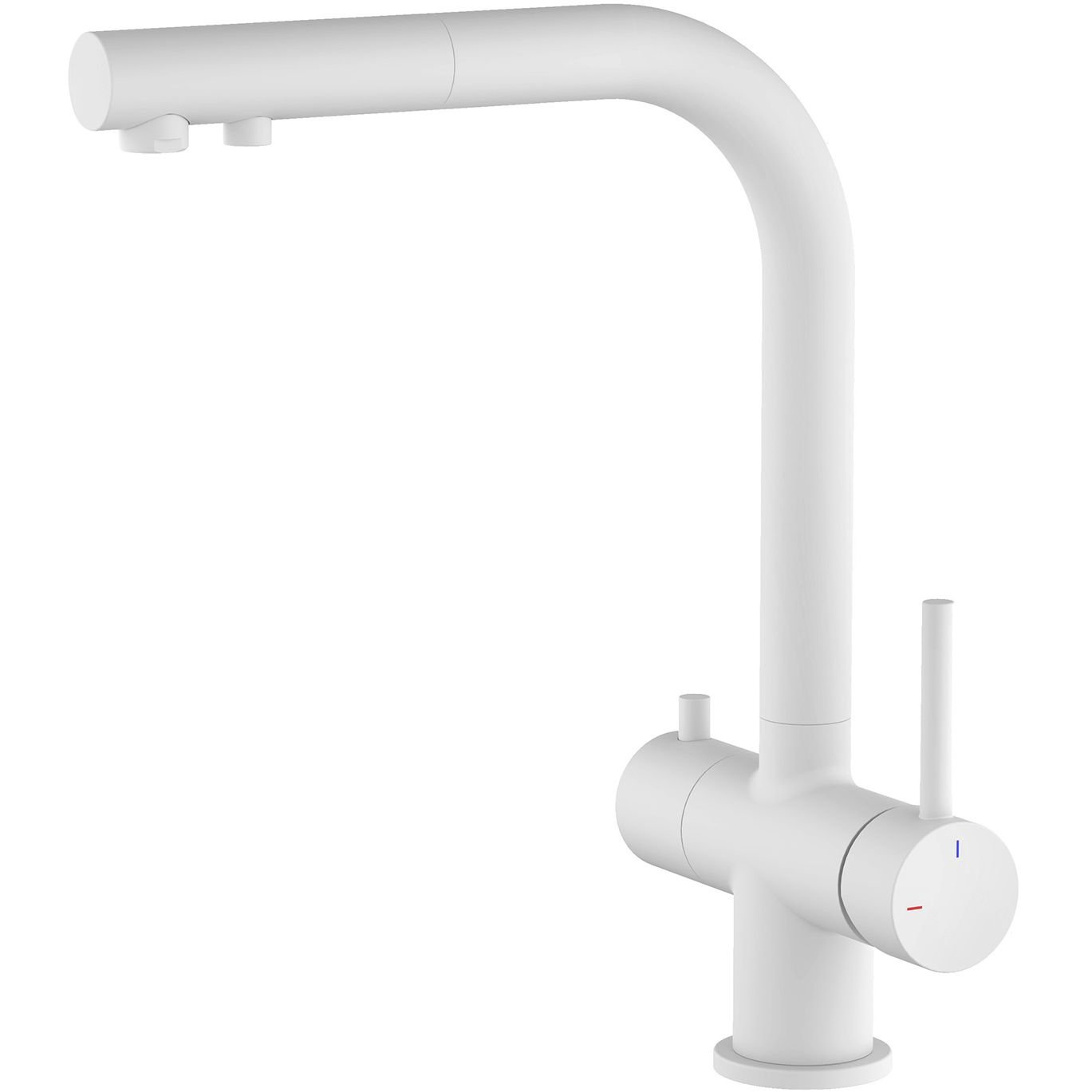 Смеситель для кухни с подключением фильтра и выдвижным изливом Timo (Тимо) Saona, белый, 2356/16FL