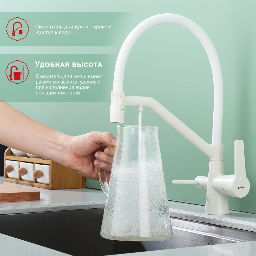 Смеситель для кухни с подключением фильтра Raglo (Рагло) R80.62.08, белый