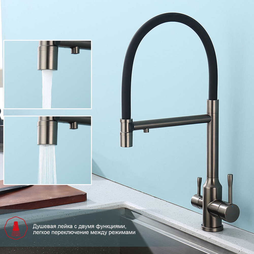 Смеситель для кухни с подключением фильтра Raglo (Рагло) R81.63.09, графит