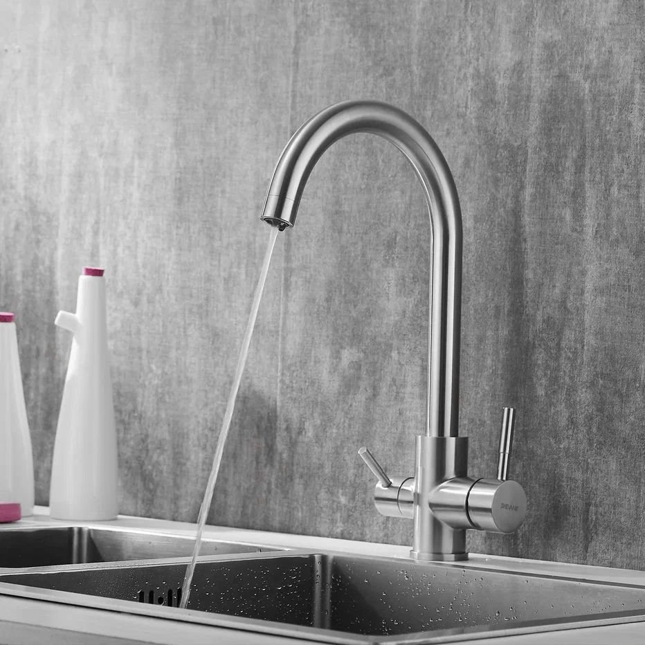 Доставка Смеситель для кухни с подключением фильтра Shevanik (Шеваник) S168B, сатин из Москва в районы и города ЮВАО, ЮЗАО, ЮАО, Новомосковский АО, Одинцово, Подольск, Щербинка, Троицк, Строительный рынок Славянский мир, 41-й км МКАД, бывшая Мельница, Красногорск, Домодедово, Тёплый стан, Коммунарка, Мосрентген, Видное, Мамыри, Краснознаменск