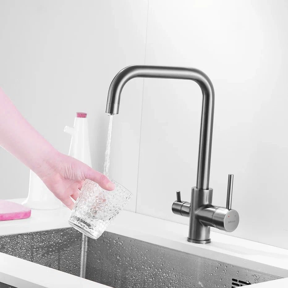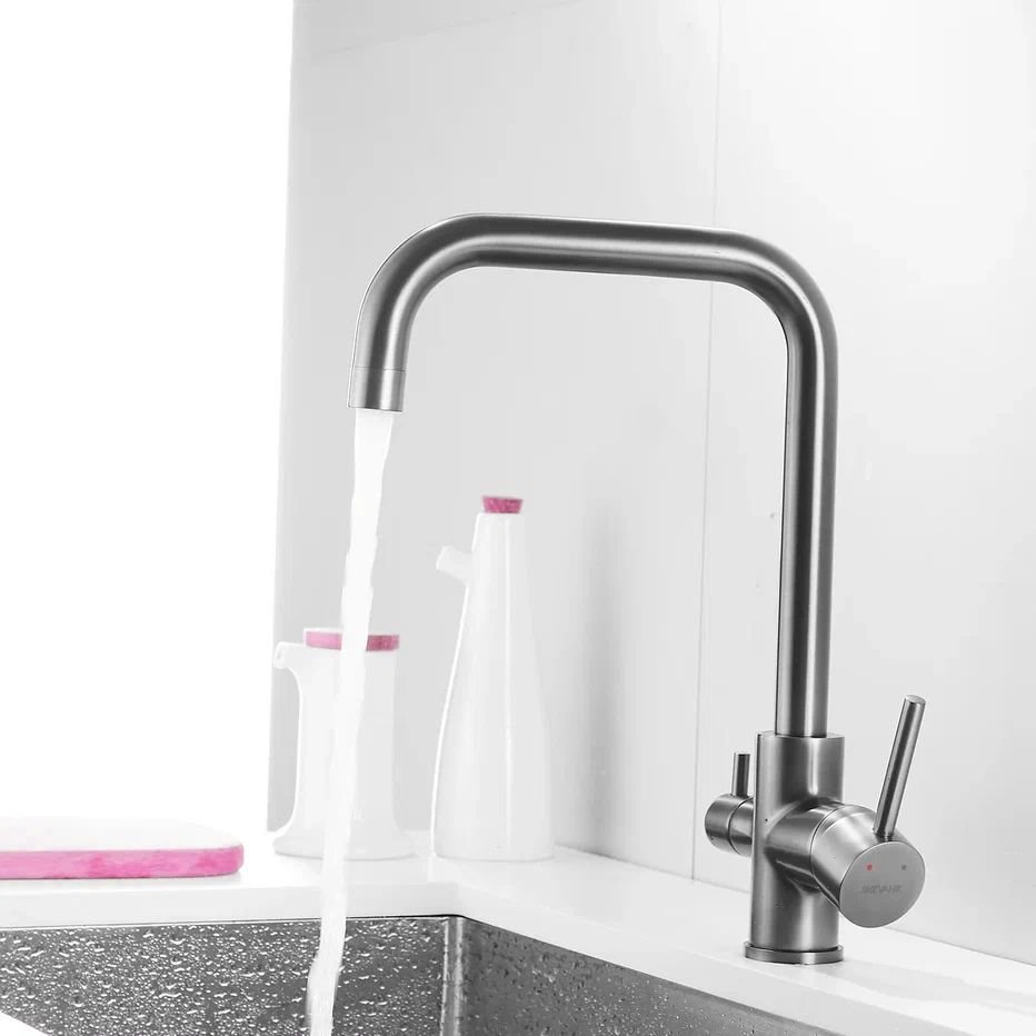 Смеситель для кухни с подключением фильтра Shevanik S228T, оружейная сталь