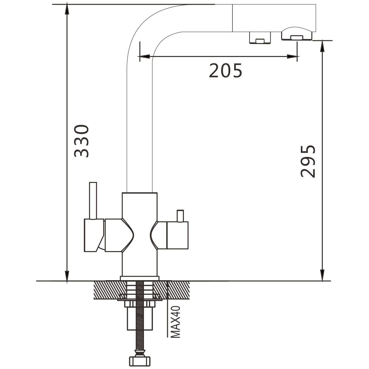 Высота излива (мм):295 p>