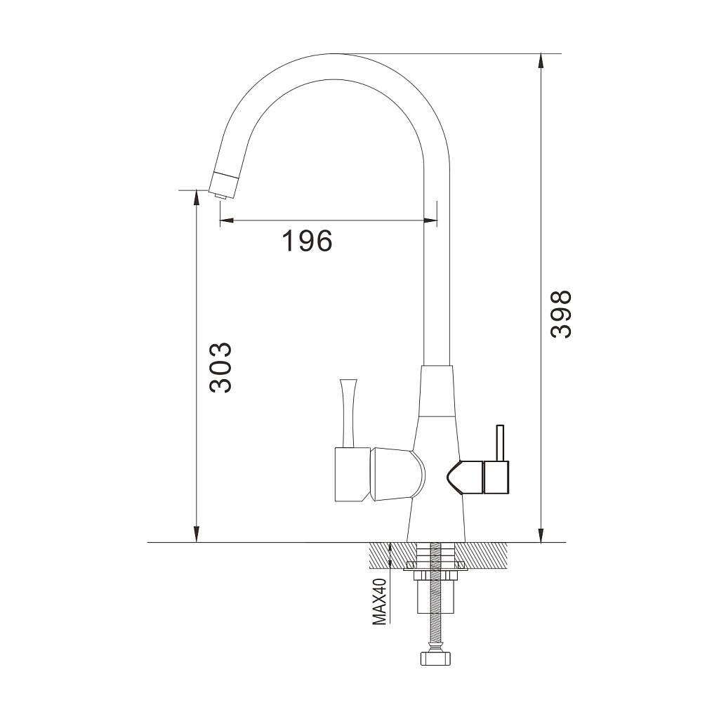 Высокий поворотный излив с аэратором не только стильно выглядит, но и практичен в использовании. Дополнительный канал для подачи питьевой воды делает этот смеситель универсальным решением для вашей кухни. Монтаж к столешнице или мойке осуществляется легко и быстро с помощью гайки, а в комплекте уже идет гибкая подводка длиной 50 см с стандартом подключения 1/2".