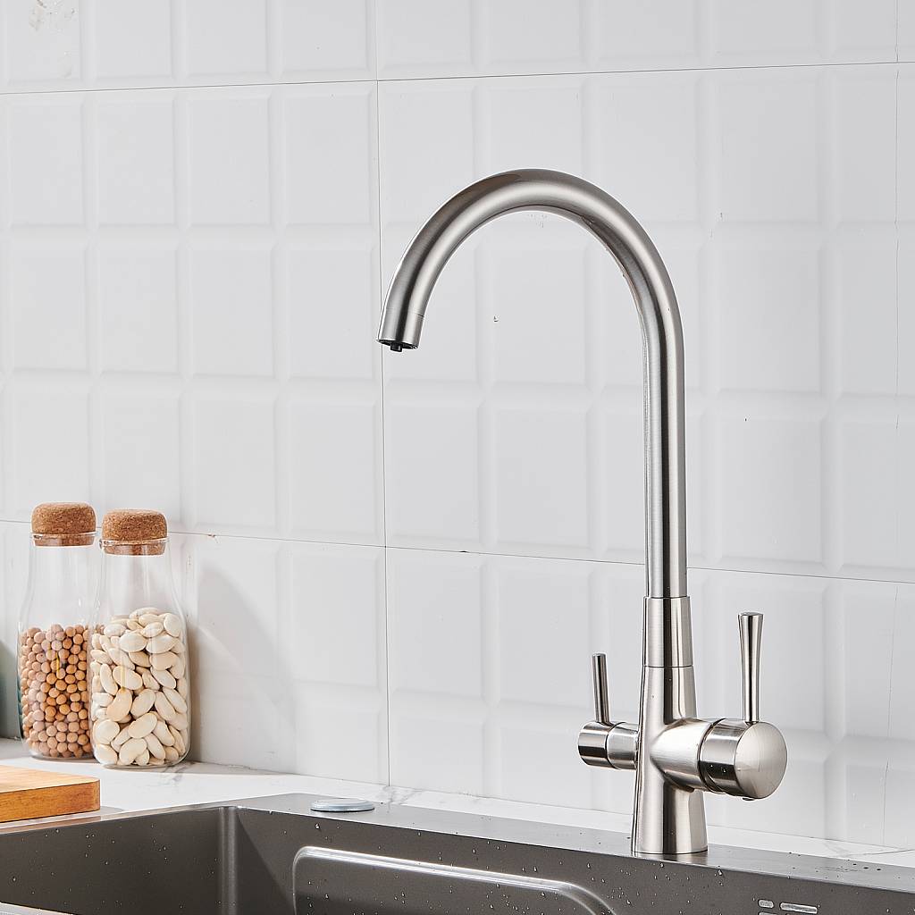 Смеситель для кухни с подключением фильтра воды Raffine (Раффин) F118T, оружейная сталь