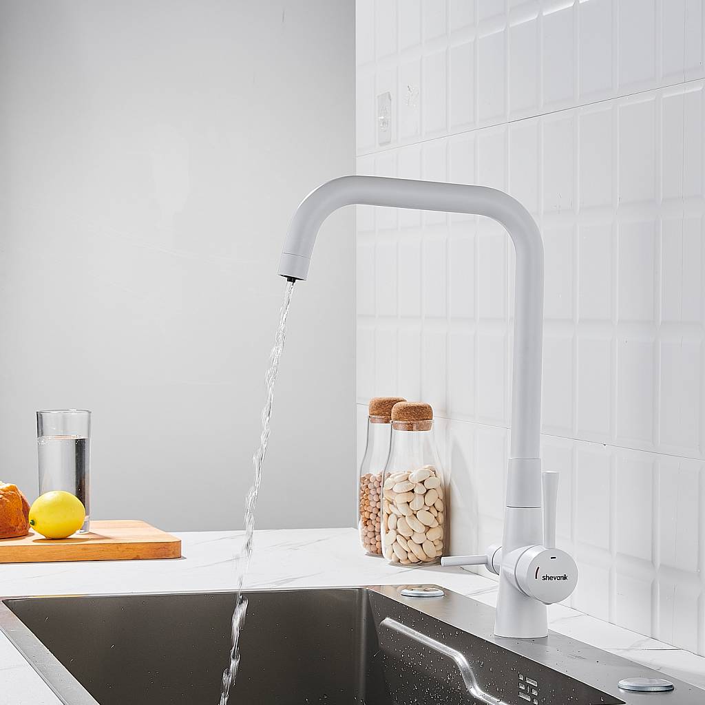Доставка Смеситель для кухни с подключением фильтра Shevanik (Шеваник) S528C, белый из Москва в районы и города ЮВАО, ЮЗАО, ЮАО, Новомосковский АО, Одинцово, Подольск, Щербинка, Троицк, Строительный рынок Славянский мир, 41-й км МКАД, бывшая Мельница, Красногорск, Домодедово, Тёплый стан, Коммунарка, Мосрентген, Видное, Мамыри, Краснознаменск