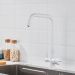 Высокий поворотный излив с аэратором не только стильно выглядит, но и практичен в использовании. Дополнительный канал для подачи питьевой воды делает этот смеситель универсальным решением для вашей кухни. Монтаж к столешнице или мойке осуществляется легко и быстро с помощью гайки, а в комплекте уже идет гибкая подводка длиной 50 см с стандартом подключения 1/2".