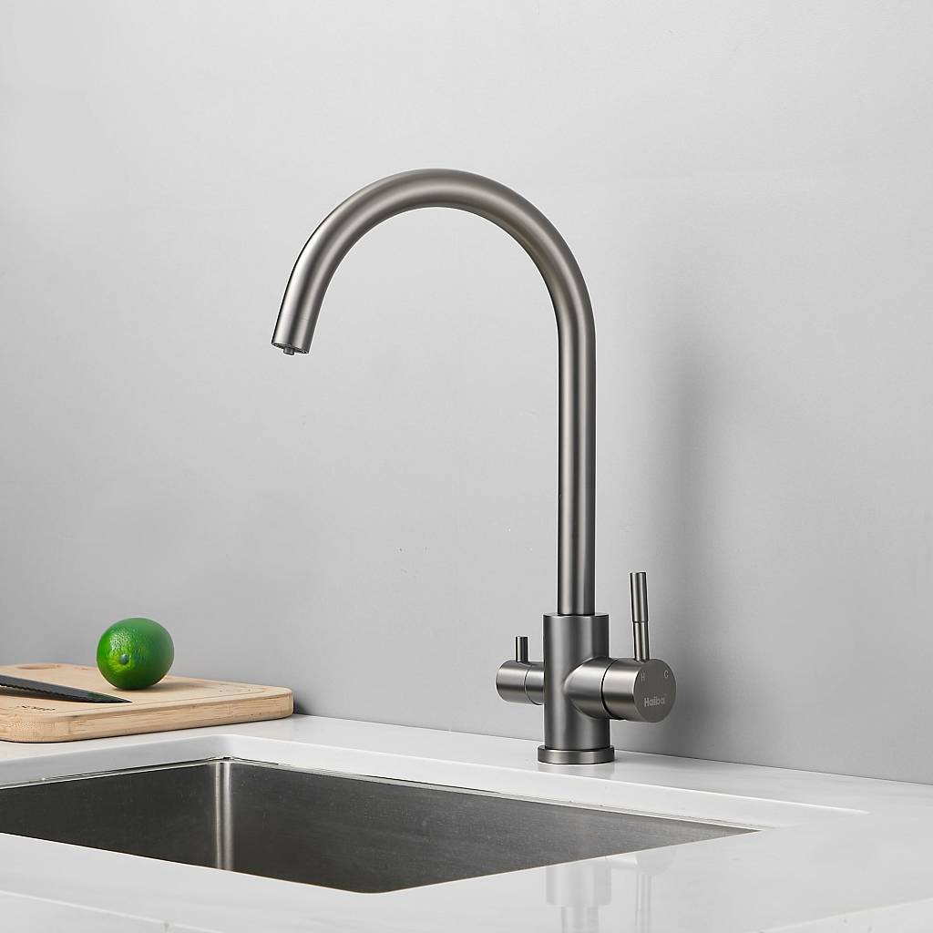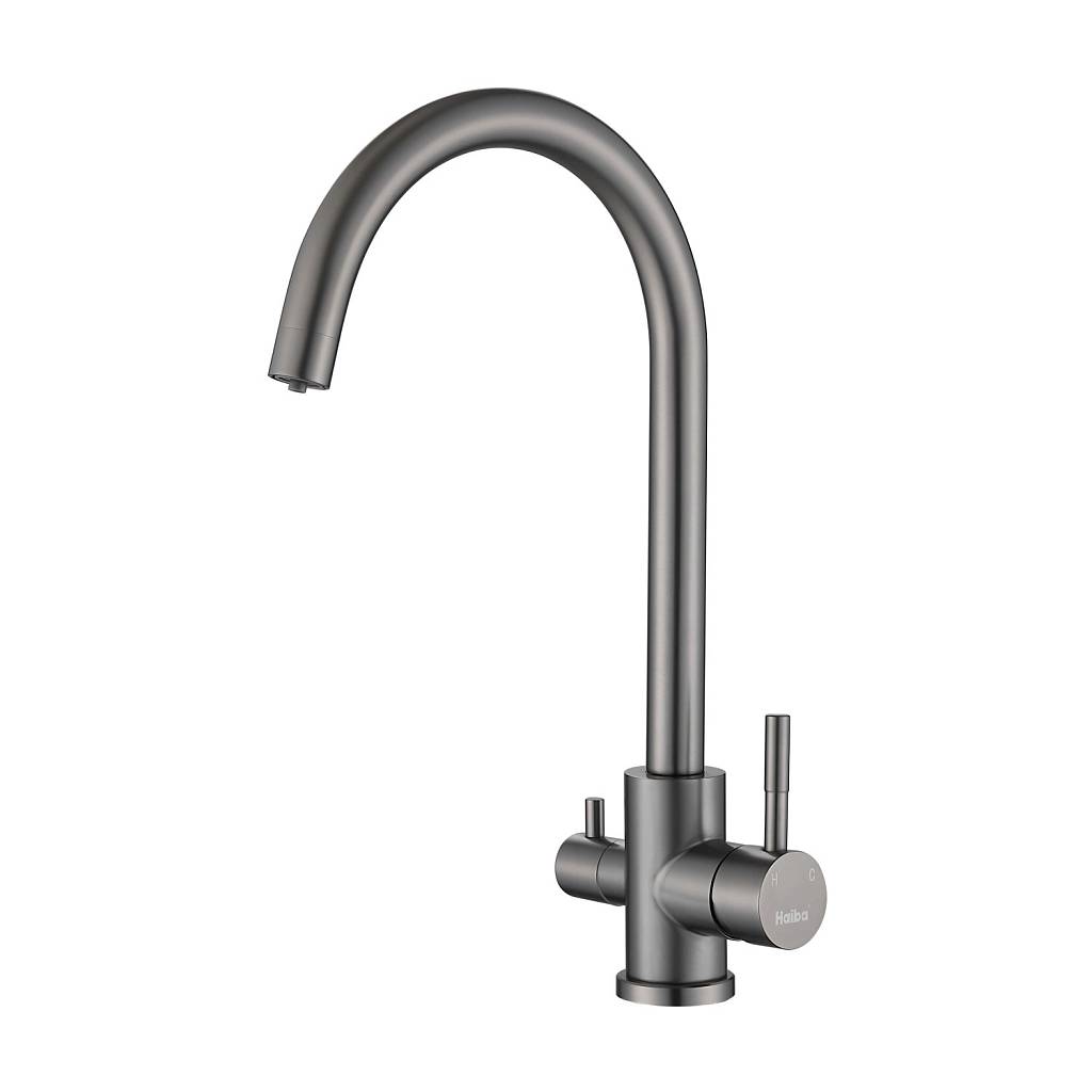 Смеситель для кухни с подключением фильтра воды Haiba (Хаиба) HB43828-3, оружейная сталь