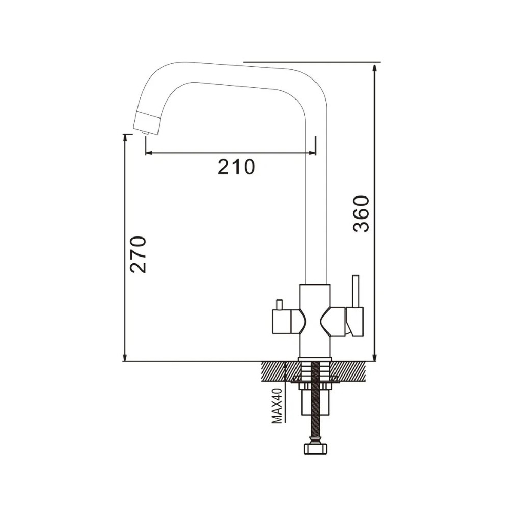 Смеситель для кухни с подключением фильтра воды Raffine (Раффин) F118T, оружейная сталь