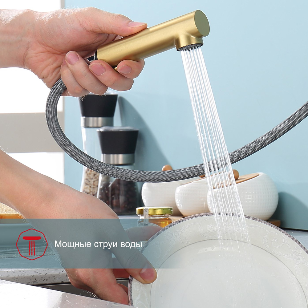 Смеситель для кухни с выдвижным изливом Raglo (Рагло) R86.49.03, золотой сатин