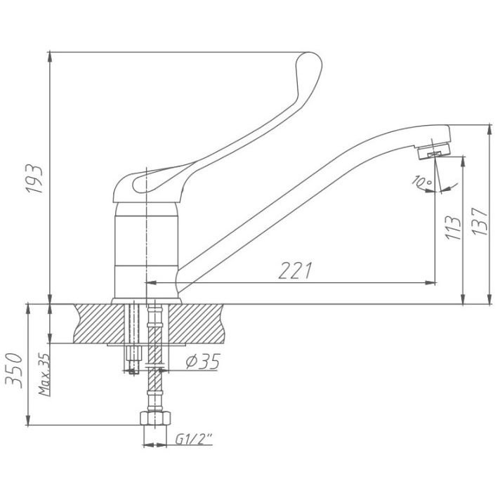Смеситель для кухни с хирургической ручкой Haiba (Хаиба) HB4254, хром