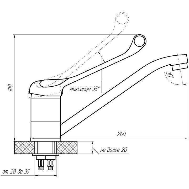 Смеситель для кухни с хирургической ручкой Сантаком stOMEGA 4979, хром