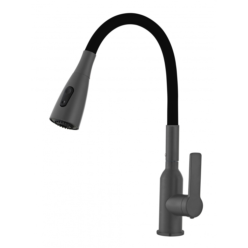 Смеситель для кухни Vieir (Виеир) V15034-G гибкий, поворотный, нержавеющая сталь,графит