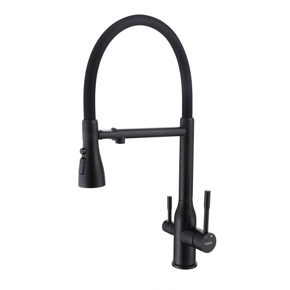 Смеситель для кухни Vieir (Виеир) V15050-C под фильтр,с аэратором, гибкий, поворотный, черный