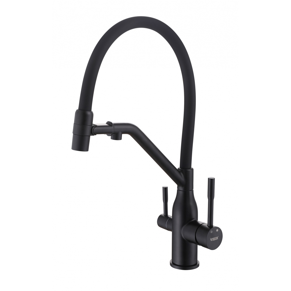 Смеситель для кухни Vieir (Виеир) V15051-C под фильтр, гибкий, поворотный, черный