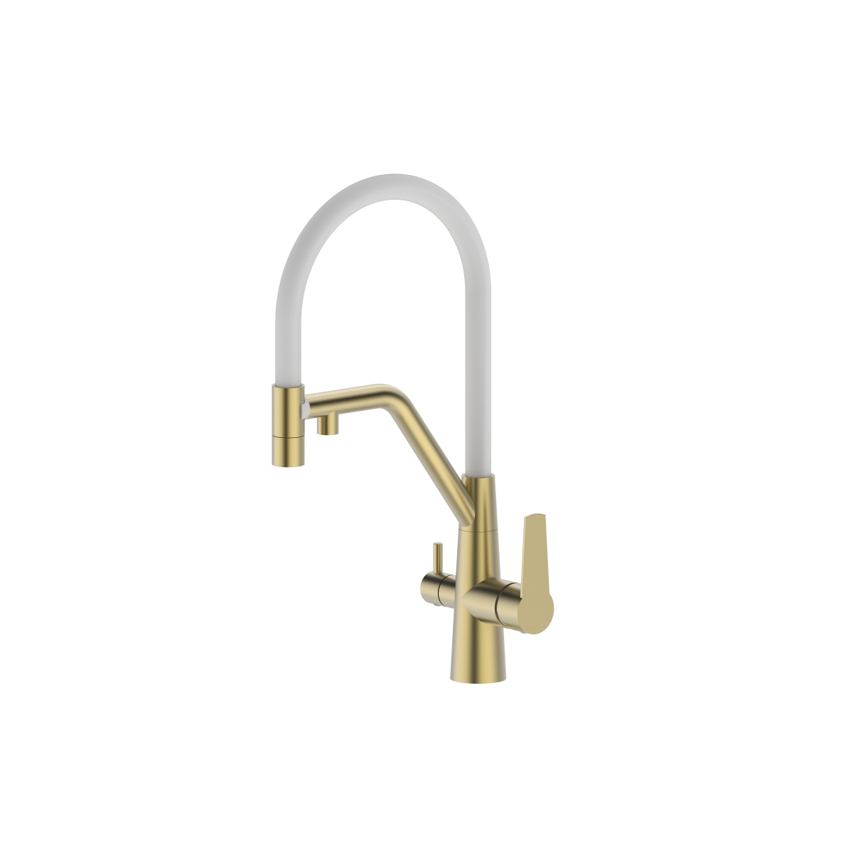 Смеситель для кухни Vieir (Виеир) V15007-S под фильтр, гибкий, поворотный, матовое золото,белый